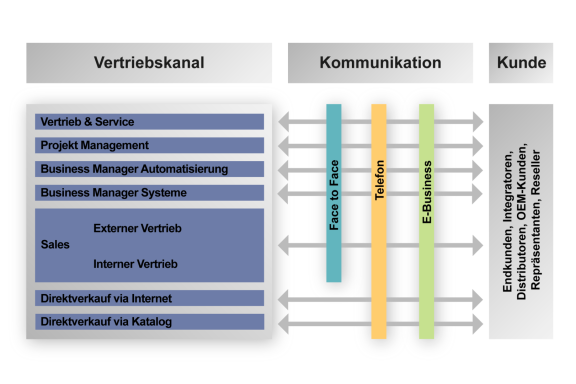 Je nach Branche oder Industrie unterscheiden sich die Marketingmaßnahmen und Vertriebsaktivitäten. Endkunden, Key Account Kunden und Anlagenbauer sind dabei total unterschiedlich zu behandeln. Ebenso unterscheidet sich der Internetverkauf sowohl vom Kundentyp als auch in der Vorgehensweise von einer Endkundenbetreuung.
